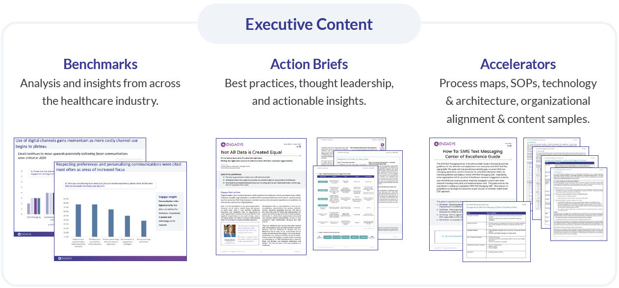 Engagys Executive Advisory Services include recommendations based on insights, knowledge, and experience from millions of healthcare consumer interactions and thousands of program implementations.